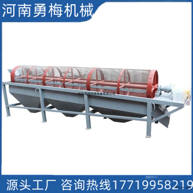 垃圾分类 粮食除杂用圆筒式振动筛主要由电机、减速机、滚筒装置、机架、密封盖、进出料口组成。I77l99582l9滚筒装置是核心部件,其内壁可装挠板,滚筒一般分几段,每段筛孔孔径相同且由小到大排列。此外,部分滚筒筛还设有梳形清筛机构等辅助部件。